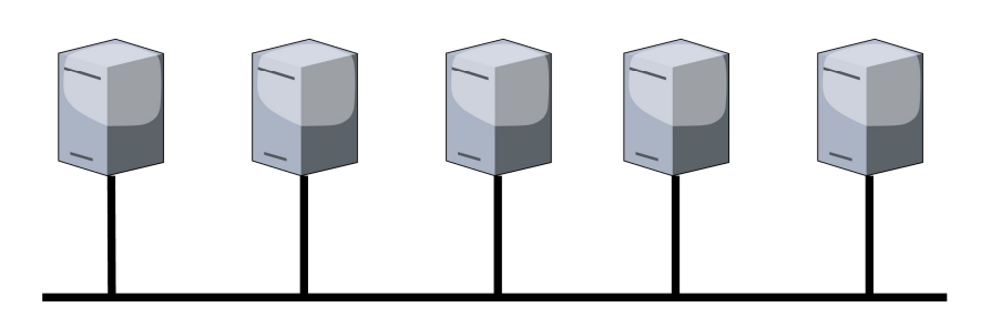 - topologia a bus: tutti i dispositivi sono collegati ad un cavo centrale. È facile da configurare ma è molto soggetta a guasti di tipo single points of failure;