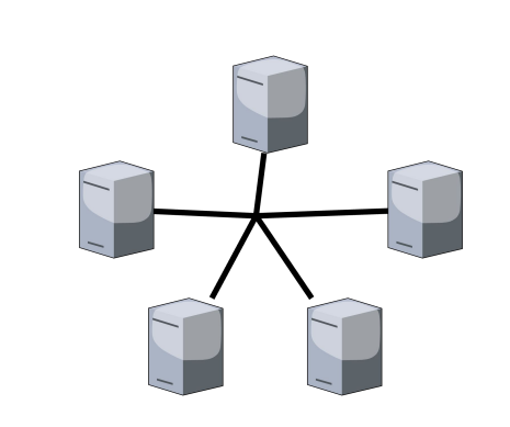 - topologia a stella: tutti i dispositivi sono collegati ad un centro, dove vi è un hub o uno switch. Consente un maggior grado di prestazione e una risoluzione dei problemi più facile, ma richiede un dispositivo centrale;