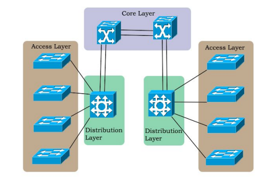 - distribution layer: connette la core e il livello di accesso, distribuendo il traffico tra più LAN;