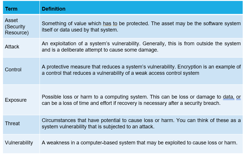 Nel contesto della sicurezza, la principale preoccupazione è che le risorse del sistema siano vulnerabili. Ad esempio, possono essere: