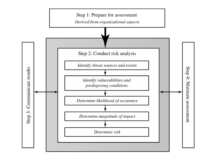 La valutazione dei rischi alla sicurezza è una fase critica, perché ci sono elevate possibilità che le risorse non vengano impegnate dove risulta più efficace, comportando sia rischi non considerati che introducono vulnerabilità, sia uno spreco di soldi e tempo nell’uso improprio di misure di protezione. Idealmente, si vorrebbe analizzare ogni asset e valutare ogni rischio connesso, col fine di adottare contromisure per ridurre il rischio ad un livello accettabile; tuttavia, richiederebbe uno sforzo elevatissimo, il che rende questo poco fattibile nella pratica. S’introduce un ulteriore problema, riguardante la decisione su cosa costituisce un livello appropriato di rischio. Idealmente si vorrebbe eliminare completamente ogni rischio; risulta, tuttavia, più realistico impiegare un ammontare di risorse in modo proporzionale al costo che un’organizzazione dovrebbe sostenere se quel rischio avviene, prendendo in analisi anche la probabilità che quel rischio, appunto, si verifichi. In questo senso, specificare un livello accettabile di rischio è indice di prudenza e consente di spendere in modo ragionevole il budget, il tempo e il personale dell’organizzazione.