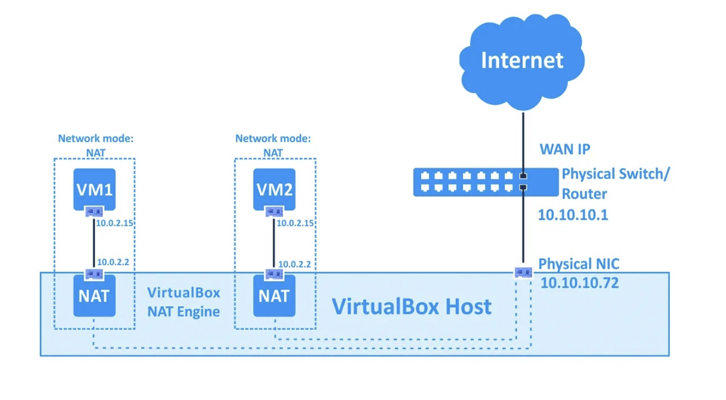 Si tratta della modalità di rete di default. Un sistema operativo guest su una macchina virtuale può accedere agli host nella LAN usando un dispositivo NAT virtuale. Anche le reti esterne, come Internet, saranno accessibili dalla macchina virtuale.