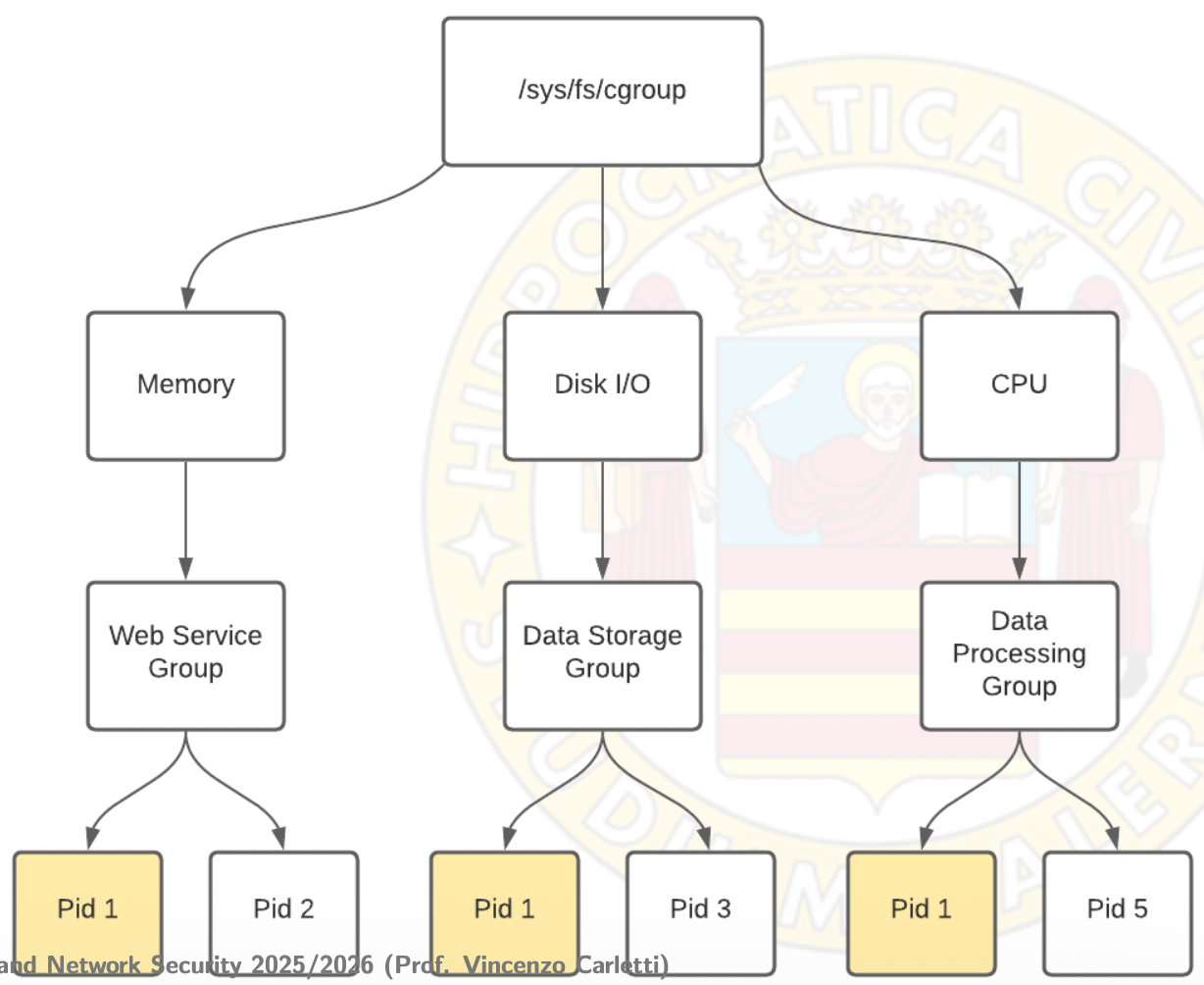 I Cgroup sono una risorsa integrata nel kernel che permette all’amministratore di impostare limiti di utilizzo su ogni processo del sistema, tra cui: