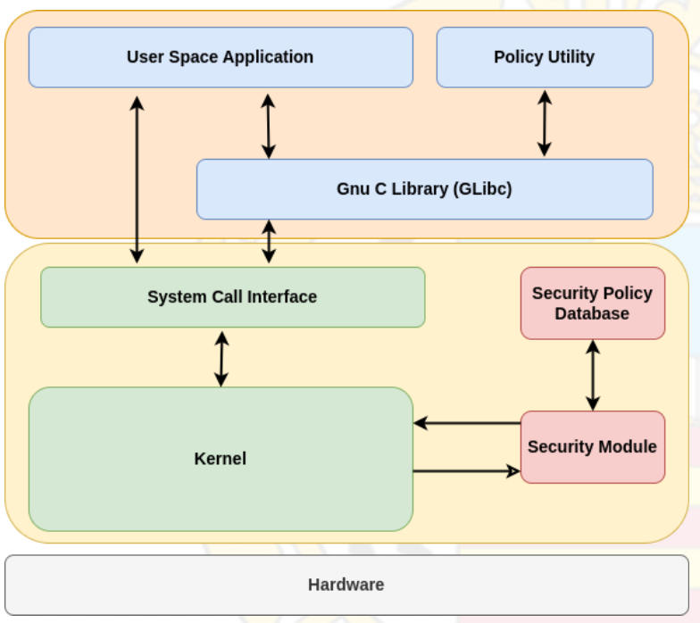 LSM media l’accesso agli oggetti del kernel disponendo degli hooks nel codice del kernel immediatamente prima dell’accesso. Gli hooks LSM nel kernel Linux si occupano di mediare l’accesso agli oggetti interni del kernel come inodes, tasks, file, dispositivi e IPC. I moduli di sicurezza come SELinux possono usare questi hook generici per implementare un controllo degli accessi avanzato come moduli indipendenti del kernel.